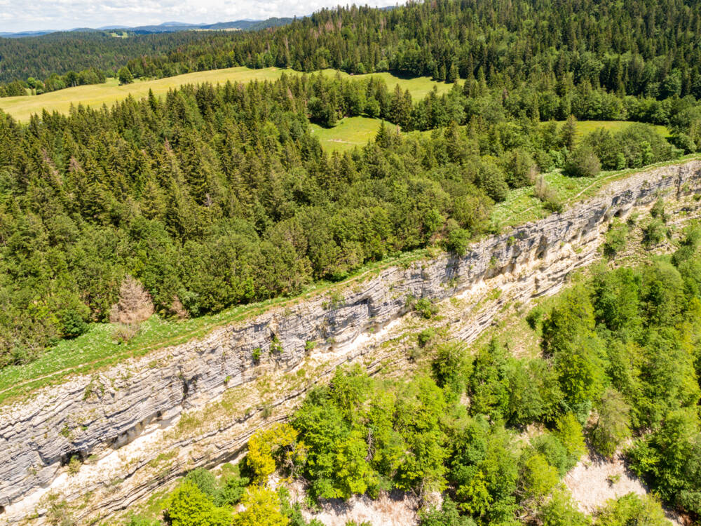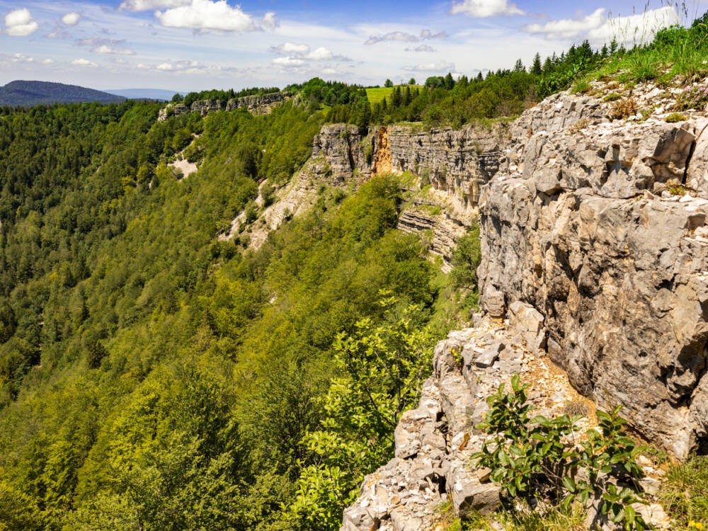 Le cirque d'Orvaz est un vaste hémicycle qu'éventre l'enticlinal chevauchant les Bouchoux.