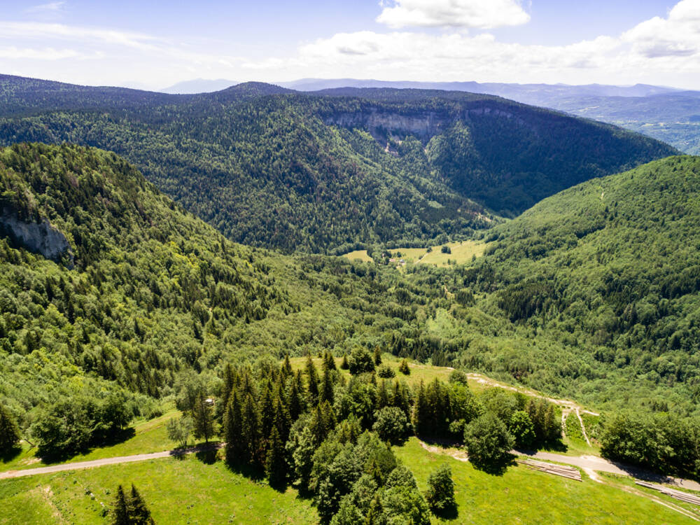 A l'ouest des Hauts Crêts du Jura, entre les vallées de la Valserine et de la Semine, s'étend une zone de hauts plateaux calcaires où l'érosion à mis en évidence des formes spectaculaires et remarquables.