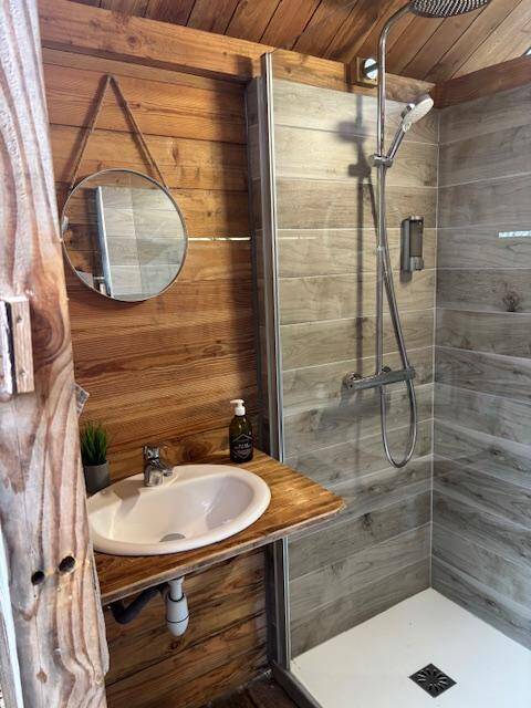 Des toilettes sèches et un point d'eau sur le plate-forme complètent une salle de bain, avec douche et WC, mise à votre disposition durant votre séjour (draps de bain et gel douche fournis).