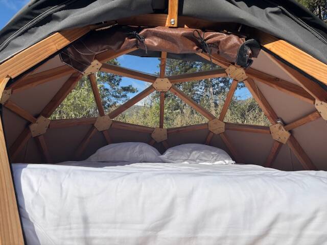 Un mini dôme géodésique cosy pour faire rêver les amoureux en quête de nuits insolites.