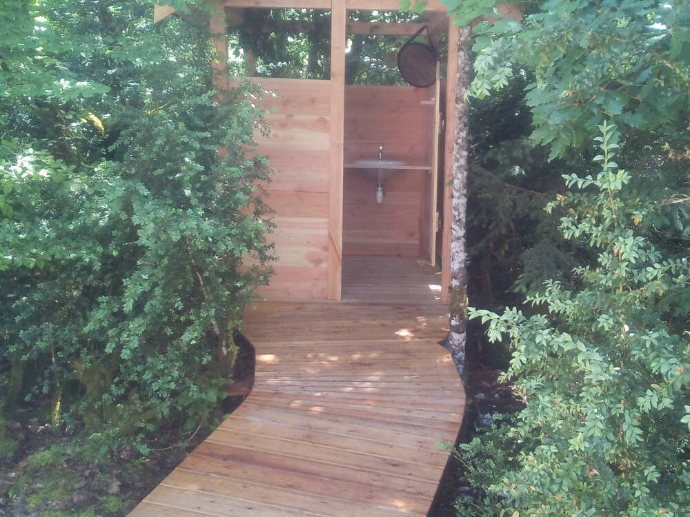 Des toilettes sèches et un point d'eau sur le plate-forme complètent une salle de bain, avec douche et WC, mise à votre disposition durant votre séjour (draps de bain et gel douche fournis).