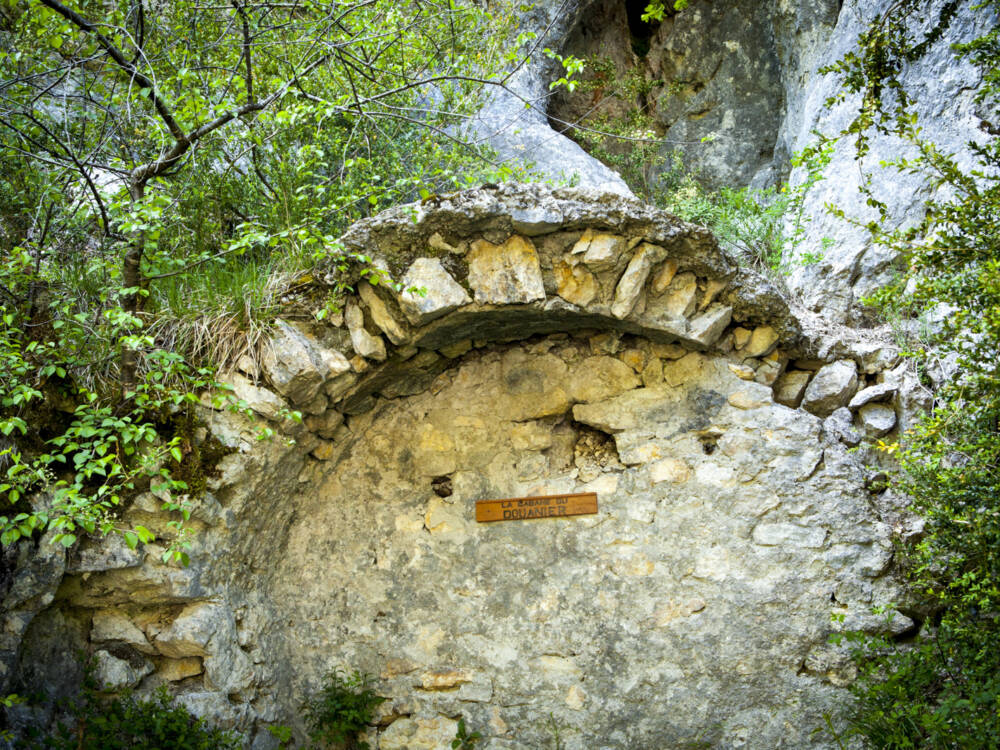 Au niveau des falaises d’escalade, des escaliers et un petit pont sur une résurgence permettent de rejoindre le bois puis le pâturage. On retrouve le chemin des gorges de la Volferine pour le retour au parking.