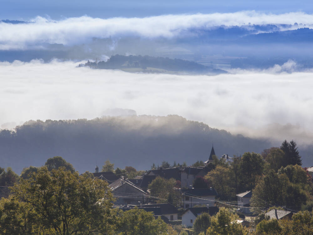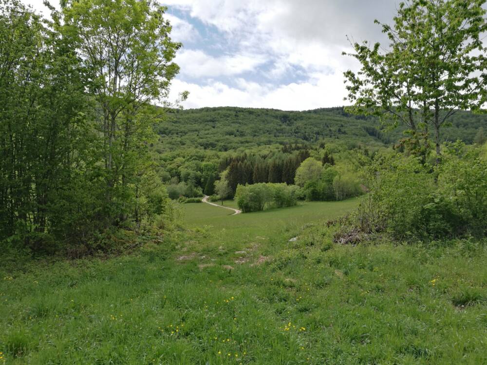 6. Continuer sur cette route forestière qui serpente dans la montagne et longe des prés où se nichent encore d’anciennes fermes maintenant souvent transformées en maisons de week-end. Au passage, admirer la vue sur la Michaille et sur le Jura.
