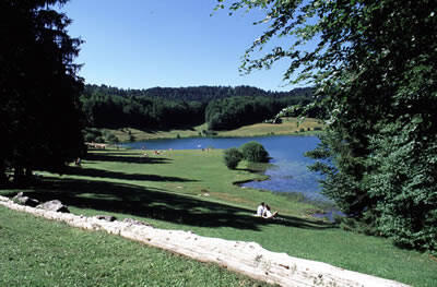 Ce joli lac de montagne est situé dans une clairière entourée de sapins. Classé site naturel, il se trouve à une altitude de 831 m et présente une superficie de 8 ha. Magnifique lac de combe, il se partage entre 3 communes : Oyonnax, Echallon et Charix. Surnommé "Le Petit Canada du Haut-Bugey", le site offre diverses activités aux visiteurs : sentiers de randonnée, circuits V.T.T., baignade surveillée, pêche... En hiver vous pourrez goûter aux joies de la luge, du patin à glace ou de la promenade en raquette.