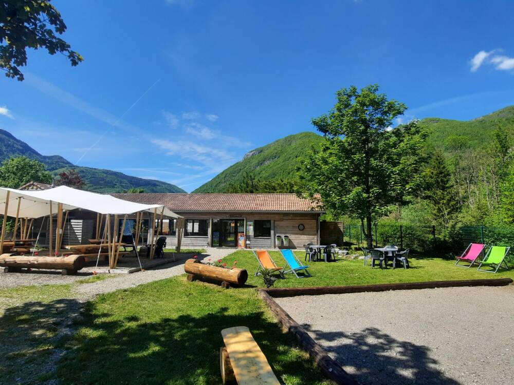 Camping eco-responsable classé 3 étoiles, paisible le long de la rivière La Valserine labellisée rivière sauvage, situé à l'entrée du village de Chézery-Forens commune des Monts-Jura.