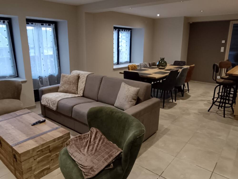 Gite en rez de chaussée avec 3 chambres balcon plein sud avec très grand salon ouvert sur une grande cuisine toute équipée.