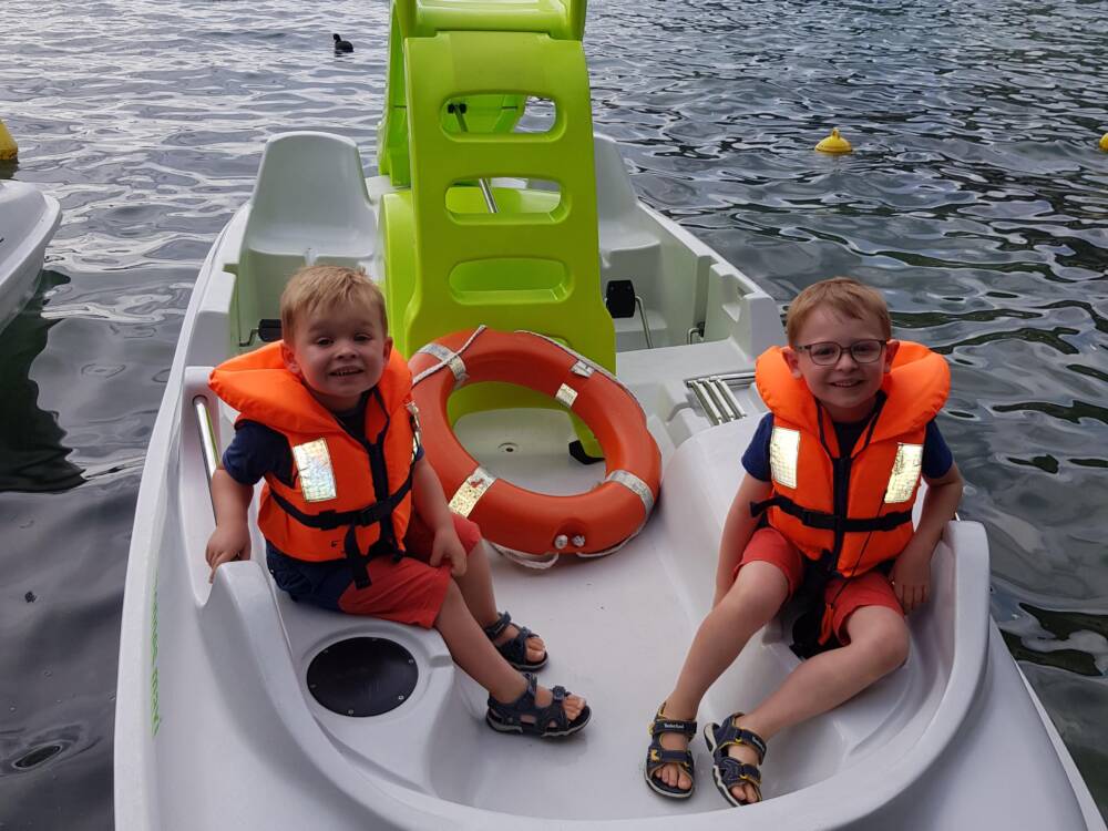 Location d'embarcations à pédales 5 places à la demi heure ou à l'heure. Promenade sur la grande étendue vert émeraude du lac de Nantua dans un cadre montagneux. Laissez-vous bercer par le clapotis des vagues ou faites la course entre amis !