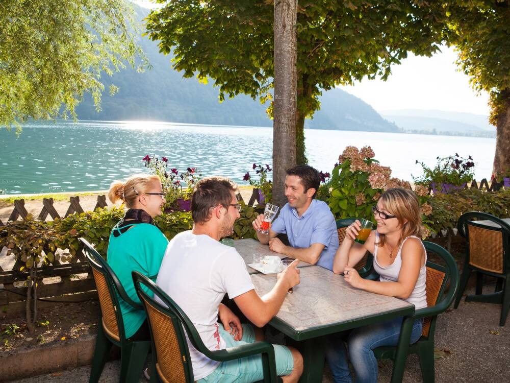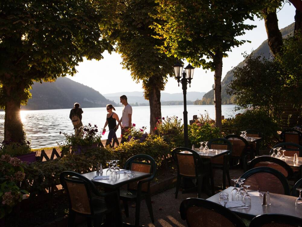 Une cuisine soignée et un emplacement idéal au bord du lac ont fait la réputation de cet établissement. On vient notamment pour y déguster le fameux "gratin du lac" : excellente quenelle de Nantua tranchée.