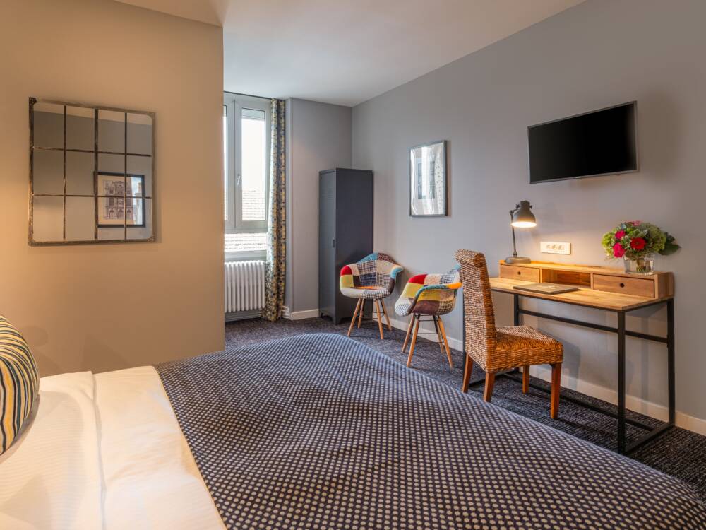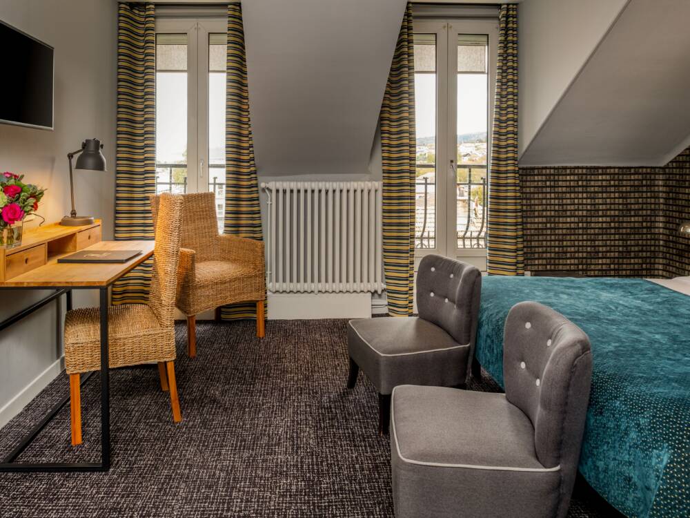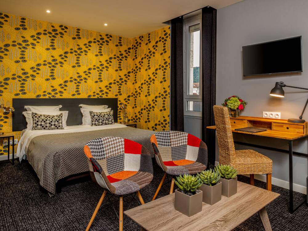 Le Nouvel Hôtel classé 3 étoiles est un écrin de raffinement au centre-ville d'Oyonnax invitant à vivre une expérience inattendue en un lieu où les lumières, les couleurs, les matières créent une atmosphère intimiste.
