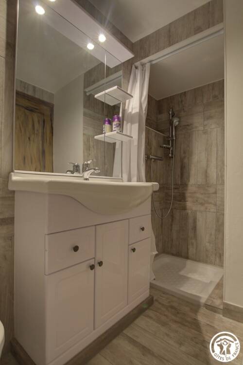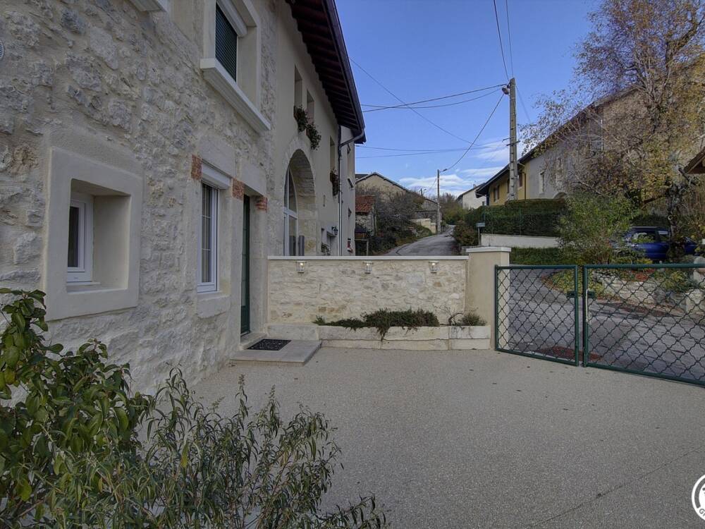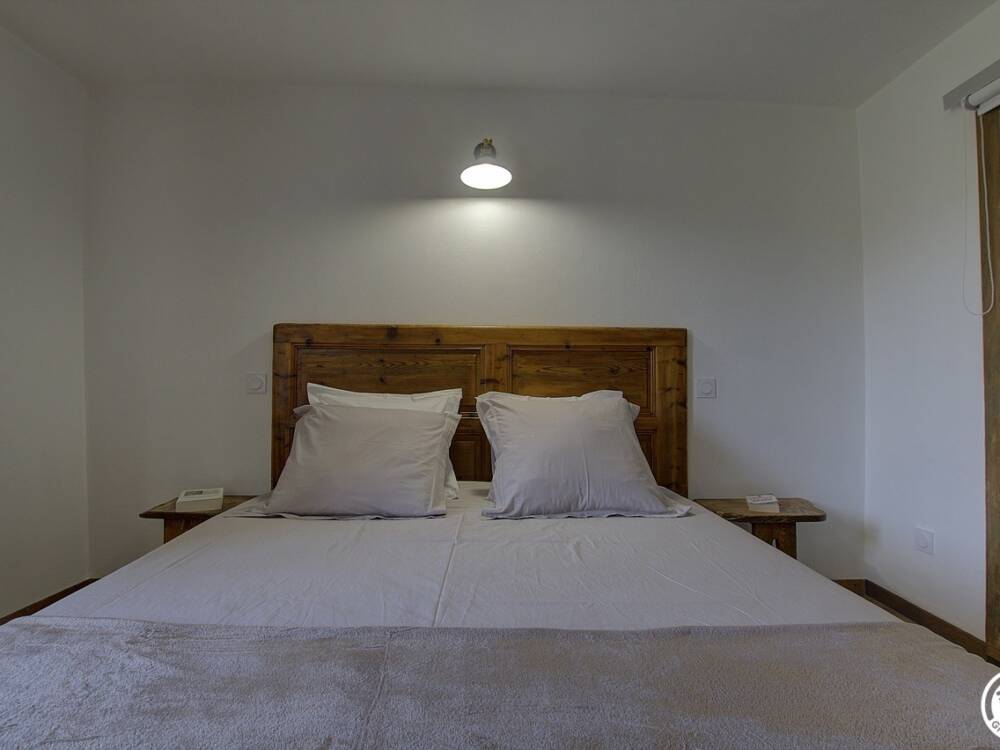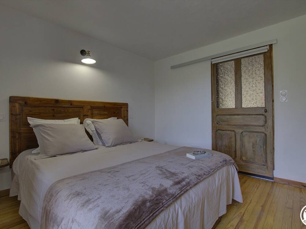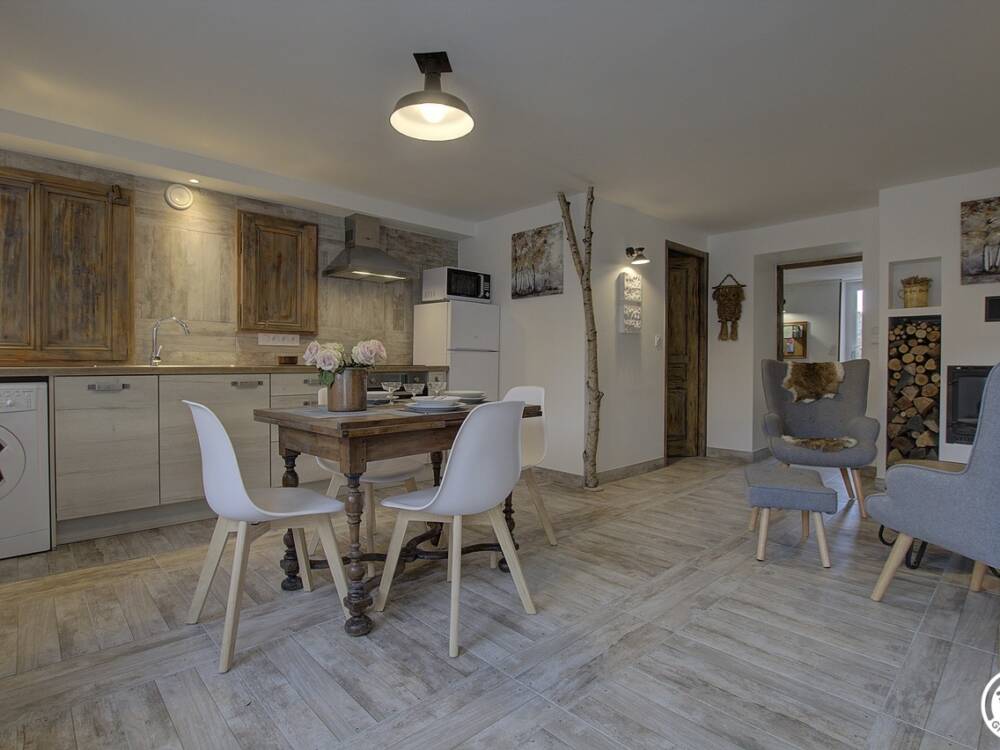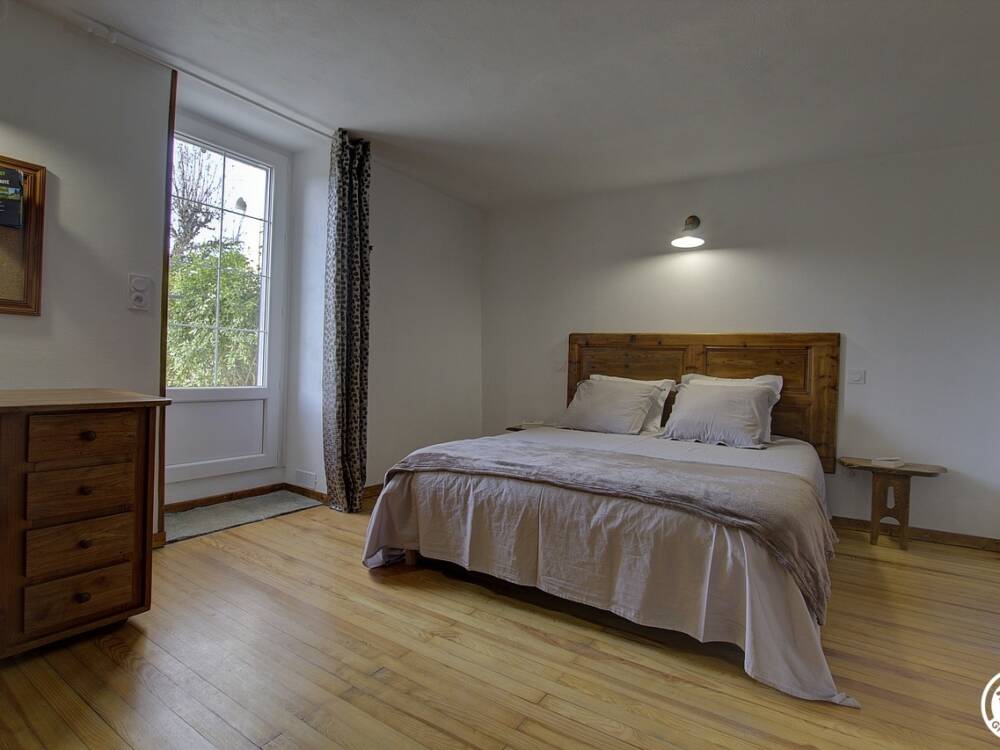 L'entrée se fait depuis la cour d'en haut sécurisée, puis sur le séjour et sa cuisine équipée et ouverte sur un salon où on peut se prélasser devant la cheminée. La chambre avec parquet, équipée d'un bureau en teck, comprend un lit en 160*200 plus un lit pliant couchage régulier en 90*190, donne accès directement sur la terrasse en dalle de pierre avec une vue dégagée sur le verger ; une salle d'eau et son WC. Un second gîte pour 5 personnes est mitoyen pour faciliter les retrouvailles en famille ou entre amis et profiter pleinement du grand verger mis à la disposition des hôtes. La propriété domine une vallée verdoyante où serpente le ruisseau l'Anconnans et la rivière l'Oignin. Les plus du gîte Chez le Tourneur : les lits sont faits à l'arrivée, le linge de toilette fourni et les charges incluses.