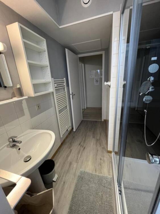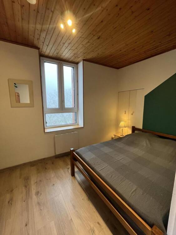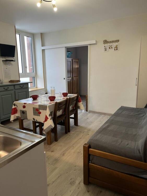 Le gîte de 32 m², entièrement rénové, situé au 1er étage du bâtiment, se compose d'un séjour avec coin cuisine et une banquette lit pour une personne (90X190), d'une chambre avec lit double (140x190), d'une salle de bain avec douche et de toilettes séparées.. Ce bâtiment abrite également un autre gîte au rez-de-chaussée, avec une entrée commune, idéal pour les familles ou amis voyageant ensemble, tout en conservant leur intimité.