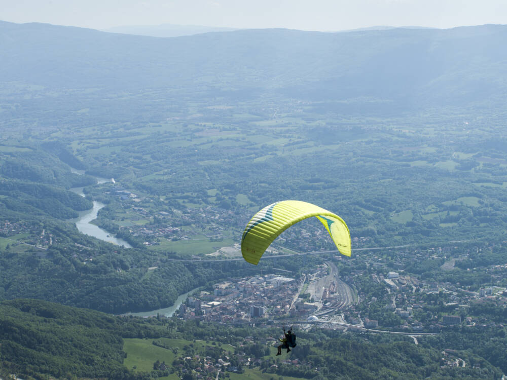Le site de vol utilisé en priorité est celui du Sorgia, au dessus de Bellegarde sur Valserine. Il bénéficie d'un dénivelé de 800 m et d'une route d'accès goudronnée de 12 km entre le décollage de la Charmante et l'atterrissage à Confort.