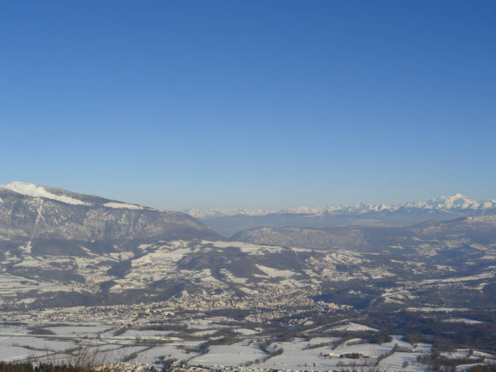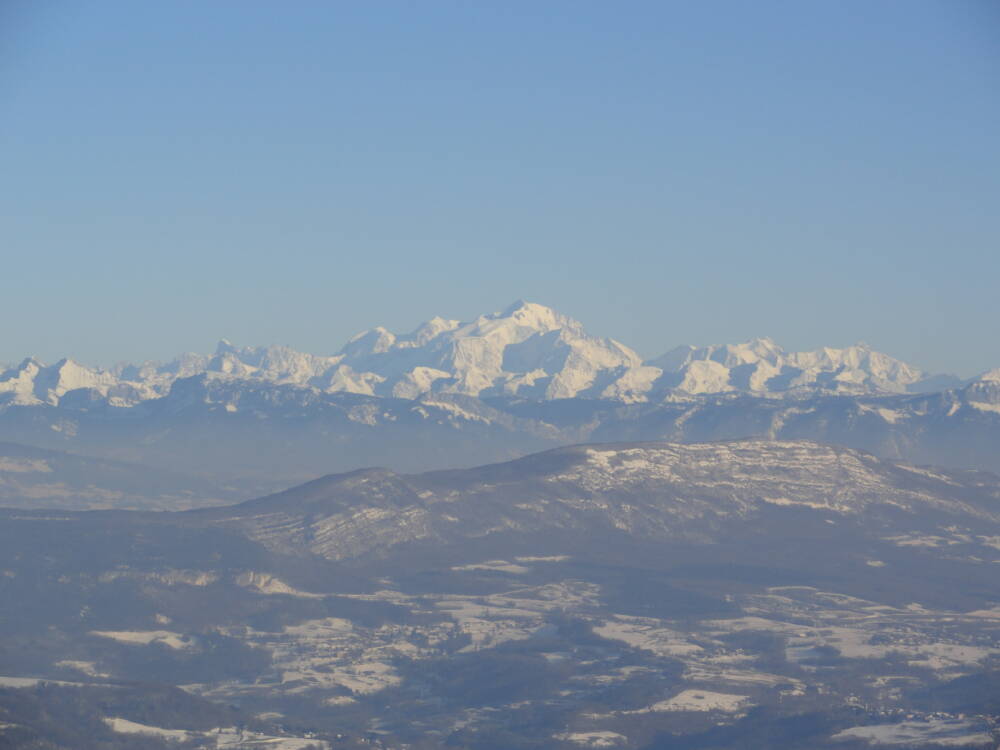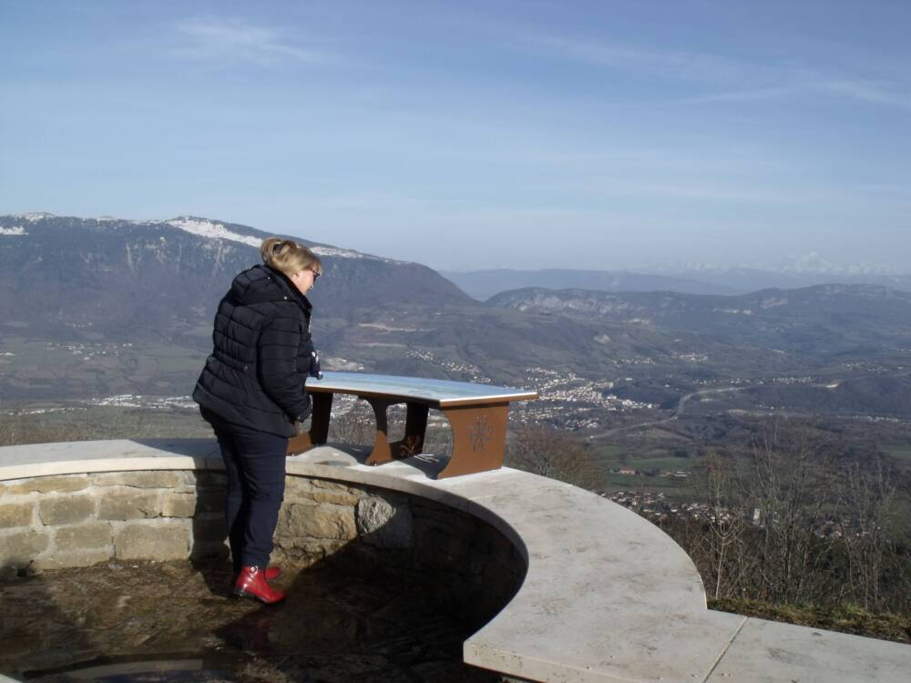 Aux portes du Plateau de Retord, cette table d'orientation vous offre une magnifique vue panoramique sur le Mont Blanc et la chaîne des Alpes, du lac Léman au lac du Bourget.